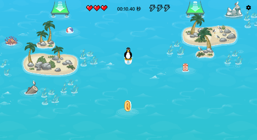 障害物やクラーケンを避けながら、ハートが尽きるまで何メートル進むことができるかを計ります。